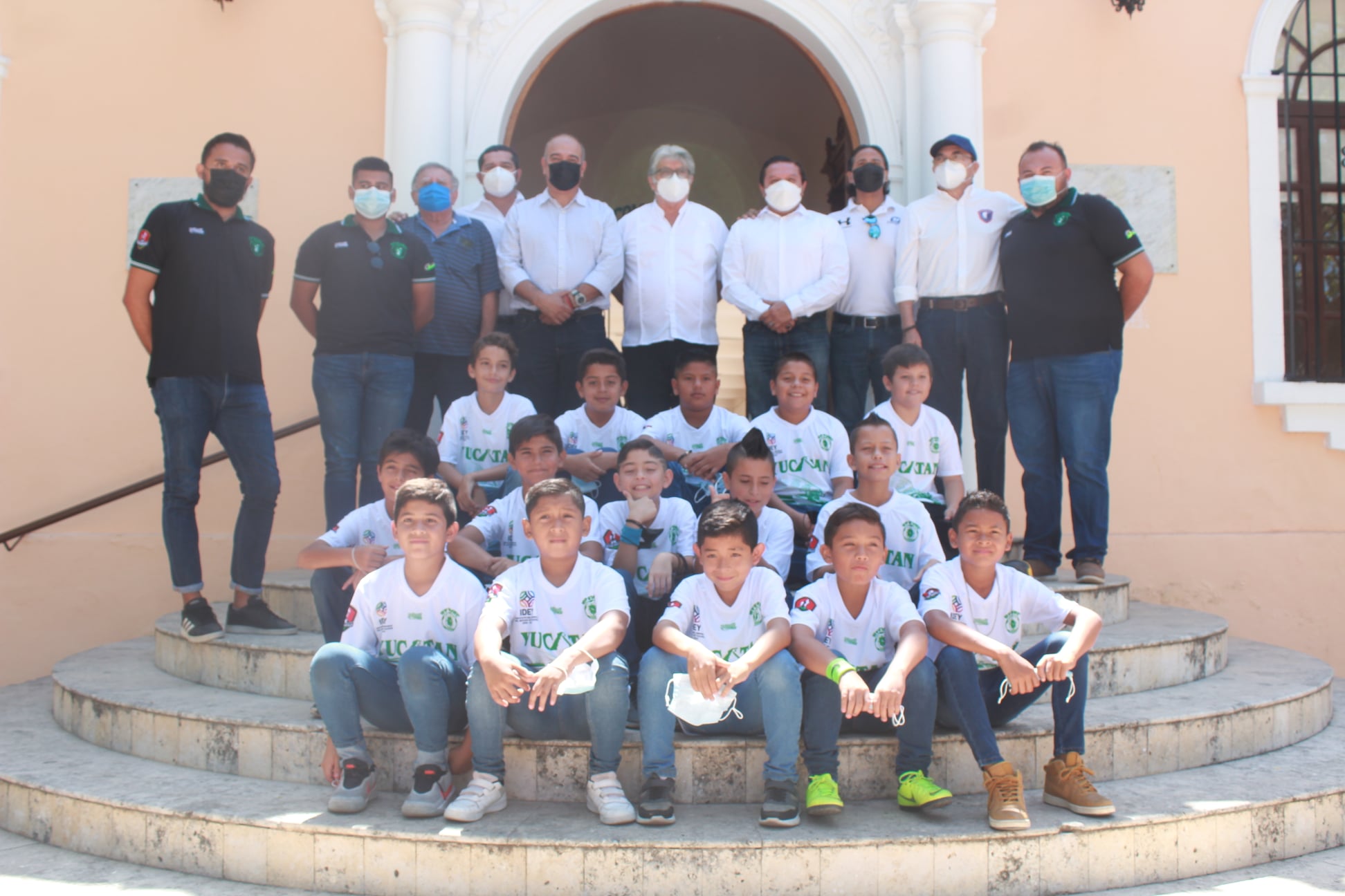 El equipo Yucatán de categoría sub-11 fue abanderado esta mañana previo a su viaje para competir en la Copa Scotiabank 2022 en Chetumal del 30 de abril al 7 de mayo, y se reunieron con autoridades y padres de familia en la Escuela Modelo previo a su salida