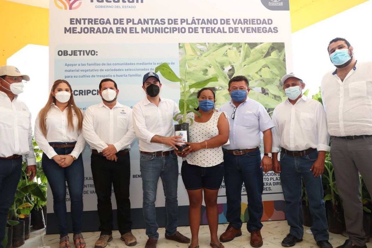 “Esta es la semilla que van a sembrar para que, el día de mañana, tengan una excelente producción de plátano Roatán, que sirve para exportación a países como China, por lo que les pedimos que no las descuiden, pues su producción puede darse de manera importante, a beneficio de todas y todos los productores de Tekal de Venegas”, indicó el funcionario.