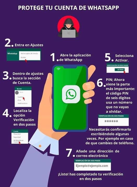 Recomendó a los usuarios a aplicar la verificación en dos pasos tanto en la red social de Facebook, como en WhatsApp, la cual puede proteger las cuentas de ser clonadas.