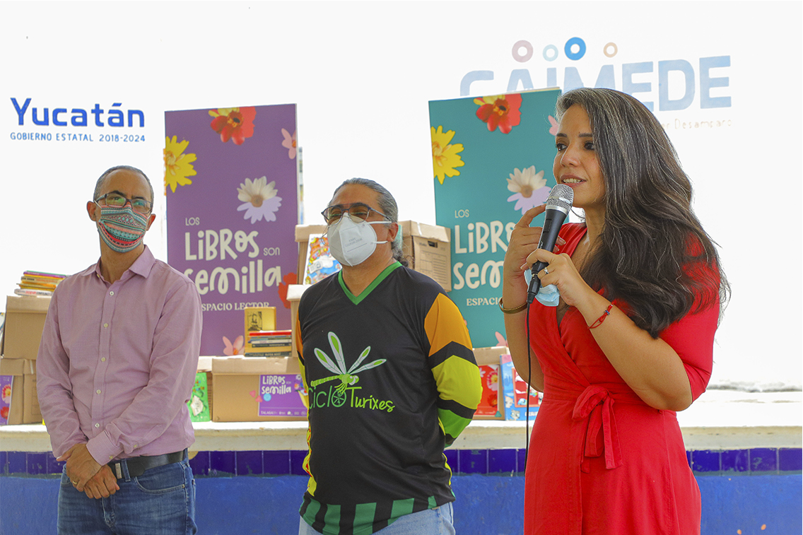 En su intervención, la directora del Sistema para el Desarrollo Integral de la Familia en Yucatán, María Teresa Boehm Calero, destacó el esfuerzo realizado especialmente para las infancias del Caimede, e invitó a los pequeños a disfrutar del material recibido.