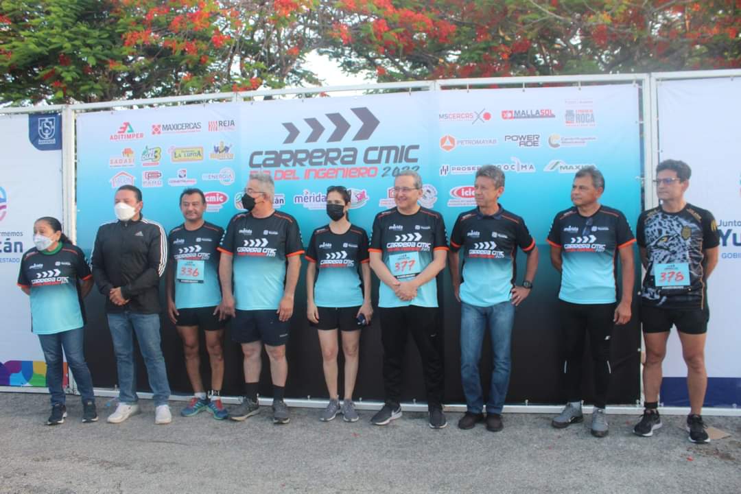 Carlos Sáenz Castillo, director del Instituto del Deporte dio el disparo de salida junto con Raúl Monforte González, presidente de la CMIC Yucatán; Jesús Aguilar y Aguilar, secretario técnico deportivo del Ayuntamiento de Mérida; José Méndez Gamboa, director de la Facultad de Ingeniería de la UADY y Miriam Canul Cob, entre otras autoridades e invitados.