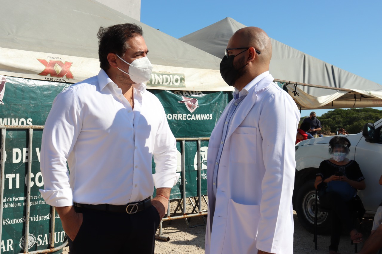 Esta mañana el alcalde Julián Zacarías Curi visito la Unidad Deportiva Progreso para supervisar la jornada de vacunación, de la dosis de refuerzo contra el Covid-19 a adultos de 40 a 59 años.