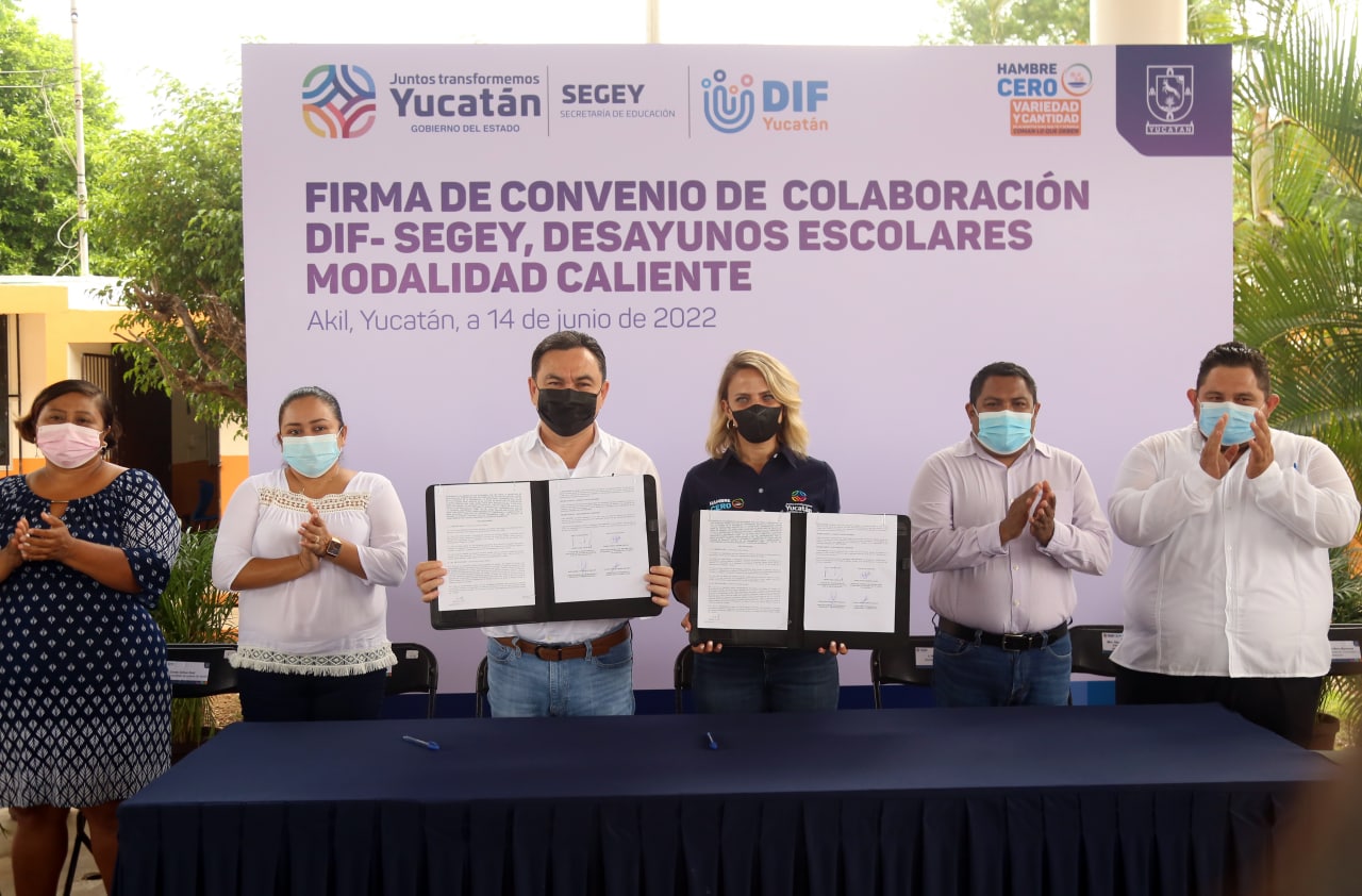 Como parte de la iniciativa Hambre Cero que impulsa el Gobernador Mauricio Vila Dosal para promover una alimentación de variedad y de cantidad para que todas las niñas y niños coman lo que deben, el Sistema para el Desarrollo Integral de la Familia (DIF) Yucatán y la Secretaría de Educación del Gobierno del Estado (SEGEY) firmaron un convenio de colaboración.