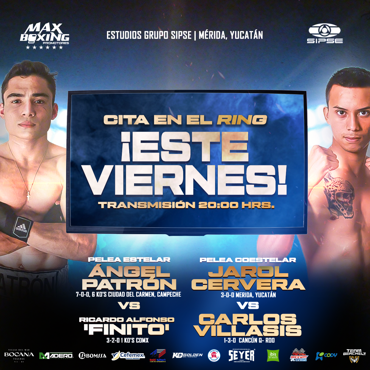 Definido el cartel de la velada boxística profesional en el centro de Mérida, en la que están en juego varios invictos, donde en su combate estelar, Ángel Patrón con marca de 7 ganadas sin derrota, va contra capitalino Ricardo Alfonso «Finito» Pérez que ha ganado en 3 ocasiones en compromiso a 6 rounds en peso Pluma.