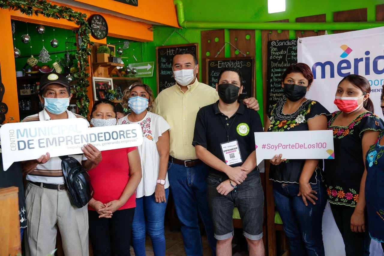 Finalmente, el Centro Municipal de Emprendedores alberga cinco generaciones emanadas del programa “Yo Soy Parte de los Cien”, cuyos integrantes, además de la Tienda Emprendedor, participan en espacios como la Expo Emprende en el Parque de Las Américas, el Remate de Montejo, la Noche Blanca, la Feria Tunich 2022, Noches de Carnaval y, próximamente, en la Expo Comercio de la Canacome.