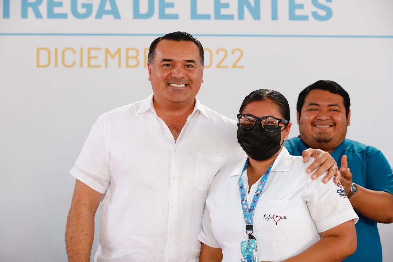 Andrea Franco Burgos, estudiante de la Escuela de Enfermería del CERT Campus Mérida y beneficiaria del Programa “Ver por Mérida en Tu Universidad”, agradeció a Barrera Concha por impulsar estos programas que además de ayudar a la salud de las y los estudiantes, representar un ahorro en las familias.