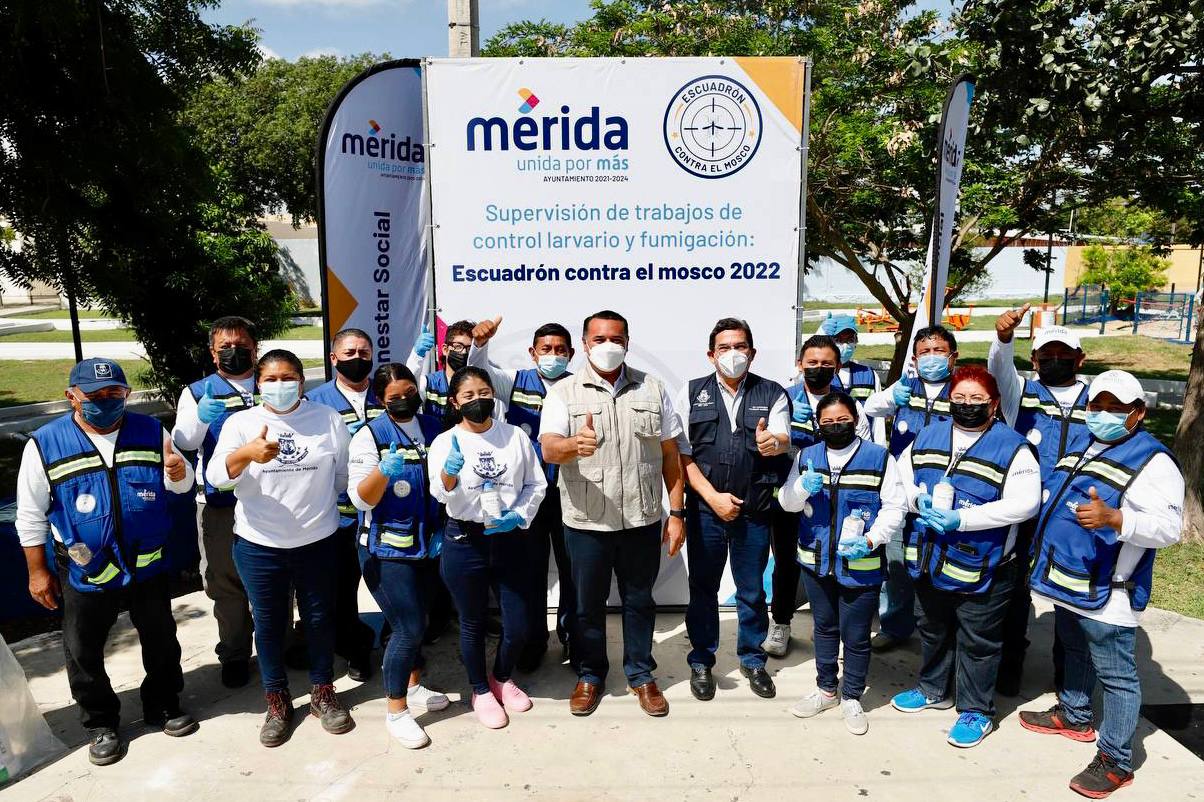 Esta estrategia de prevención que se realiza en coordinación con la Secretaría de Salud de Yucatán, el Presidente Municipal acompañado del director de Salud y Bienestar Social, Dr. Ildefonso Machado Domínguez, y el director de Servicios Públicos Municipal, José Collado Soberanis, expuso los avances que tiene el Escuadrón contra el Mosco 2022 en el Municipio.