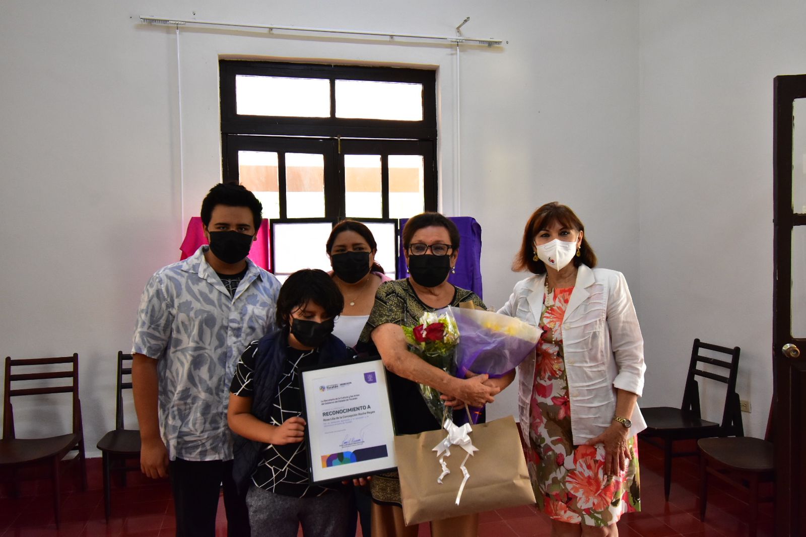 En ese lugar, como parte de la instrucción del Gobernador Mauricio Vila Dosal, de honrar a las figuras que han dado renombre a nuestro estado, la artista recibió un reconocimiento de la titular de la Secretaría de la Cultura y las Artes (Sedeculta), Loreto Villanueva Trujillo, por la perseverancia en su trabajo de actriz y docente en dicho espacio, que el 22 de mayo, cumplió 24 años al servicio de la sociedad.