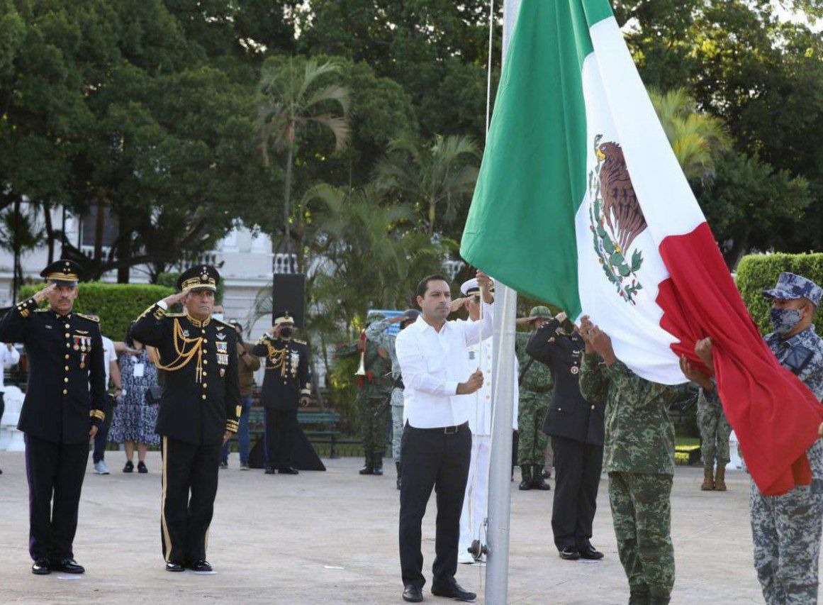Tras izar el lábaro patrio, Vila Dosal y las demás autoridades presentes rindieron honores a la bandera y entonaron el Himno Nacional Mexicano y se trasladó a Palacio de Gobierno para presenciar el desfile cívico-militar.