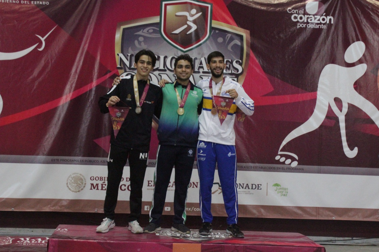 El esgrimista Gerardo Rojas Solís de la categoría juvenil se coronó campeón en la modalidad de espada varonil luego de ganar la final al regiomontano Hernán Cantú al detener el marcador 10-8. Los bronces fueron para Franco Rivera Avila de Puebla y Máximo Villaseñor Guzmán de Jalisco.