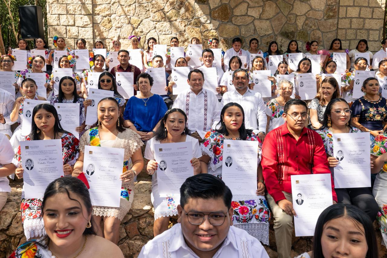 “La vocación y el amor por la enseñanza serán la fuerza que los impulse a servir a las niñas y los niños de Yucatán y al pueblo de México, que los espera con los brazos abiertos”, expresó.