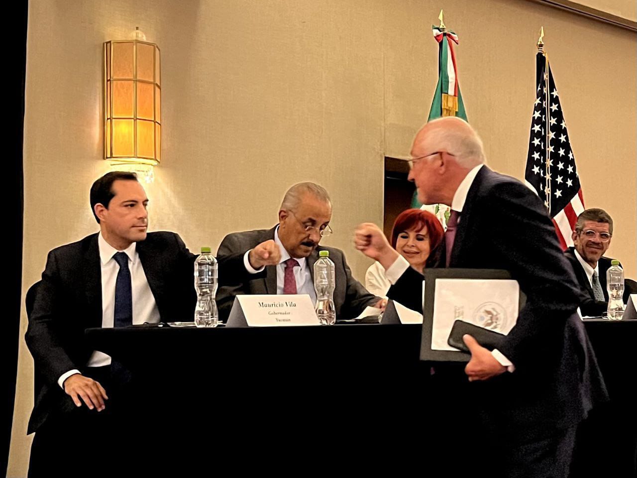 En el marco de la quinta reunión de Gobernadores del sureste, al que acudió Vila Dosal, y el embajador estadounidense, Ken Salazar, se presentaron los detalles de PROMOSUR, fondo de 30 millones de dólares para promover el desarrollo y las inversiones sostenibles en los estados de la zona.