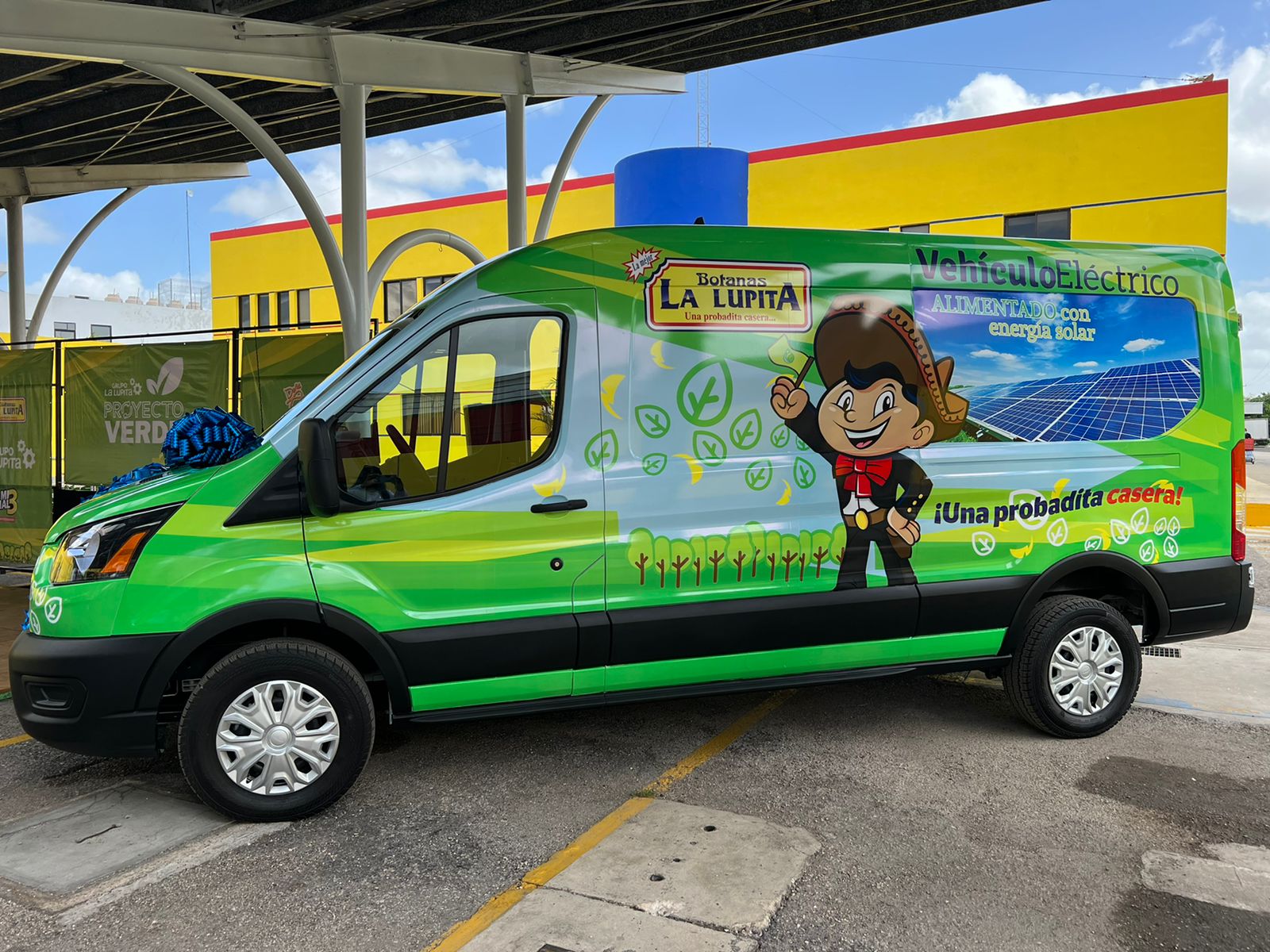 Con la presencia de Edith Valdez García – Asesora de Ventas de Ford Yucatán, Mireille Alamilla González – Gerente de Ventas de Ford Yucatán, el Sr. Freddy Ortiz Rodríguez – Director de Grupo La Lupita y Fernando Faller – Gerente General de Ford Yucatán; se presentó una de las nuevas unidades E-Transit 2022, que será destinada a las operaciones de distribución de los productos, como muestra de la próxima adquisición de otras unidades.
