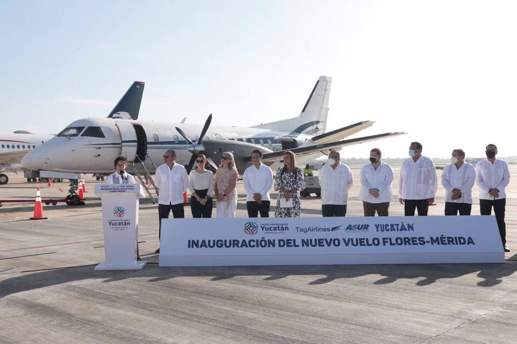 Esta mañana, en representación del Gobernador Mauricio Vila Dosal, la titular de la Secretaría de Fomento Turístico (Sefotur), Michelle Fridman Hirsch, con directivos de TAG Airlines, el Aeropuerto Internacional local y cámaras empresariales, inauguró la ruta Mérida-Flores, con la que se refuerza la conectividad internacional de la entidad.