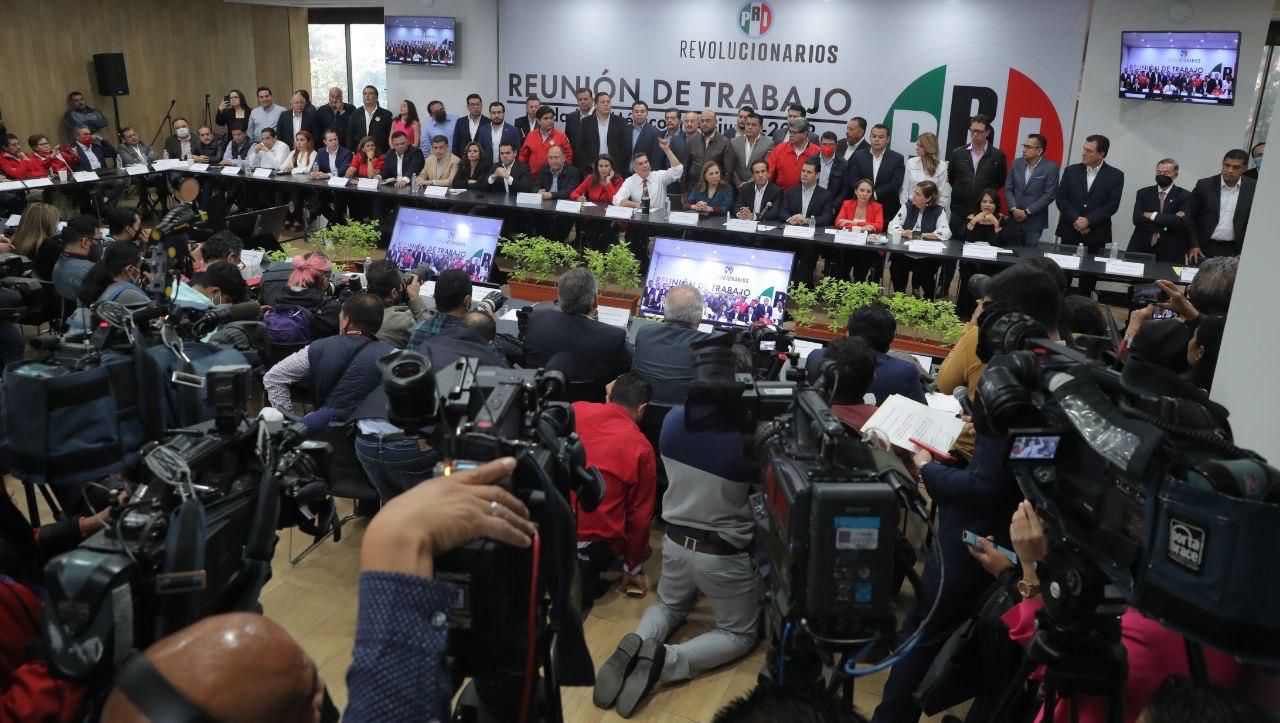 El Presidente Alejandro Moreno sostuvo en la sede partidista una reunión con las y los exdirigentes nacionales del PRI: Claudia Ruiz Massieu, Carolina Monroy del Mazo, Beatriz Paredes Rangel, Dulce María Sauri Riancho, Manlio Fabio Beltrones Rivera, César Camacho Quiroz, Pedro Joaquín Coldwell, Humberto Roque Villanueva, José Antonio González Fernández y Roberto Madrazo Pintado. También estuvo presente Miguel Ángel Osorio Chong, coordinador del Grupo Parlamentario del tricolor en el Senado de la República, a quienes se refirió como “mujeres y hombres comprometidos”, con quienes abordó “todos y cada uno de los temas”.