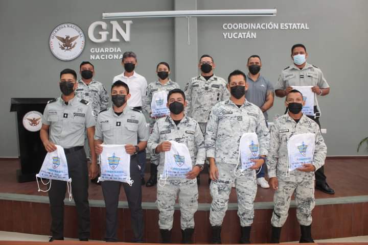 El titular del IDEY, Carlos Sáenz Castillo, estuvo en las oficinas del comisario Domingo Bahena Salgado, coordinador Estatal de la Guardia Nacional, para distribuir ocho paquetes, entre el agente Yosher Cetina Noriega; los subagentes Sabino Camacho Nanduca y Jorge Gallardo Barrón, y los guardias Luis Pech Ordóñez, Patricia Gómez García, Carlos Pantoja Cobá, Beder Domingo de la Cruz y Misael López May.