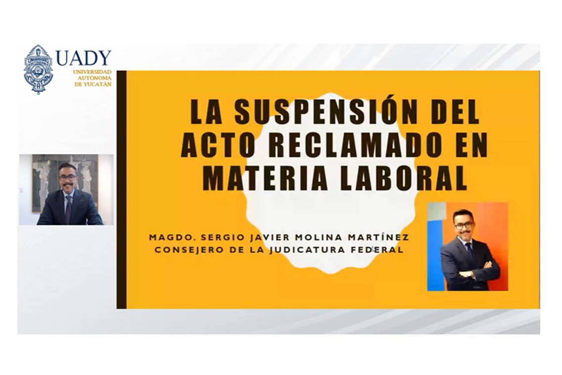 Durante la conferencia “La suspensión del acto reclamado en materia Laboral”, realizada como parte de las actividades por el Centenario de la Universidad Autónoma de Yucatán (UADY), el jurista también recordó que esto sirve como una medida cautelar para proteger los derechos de los trabajadores.