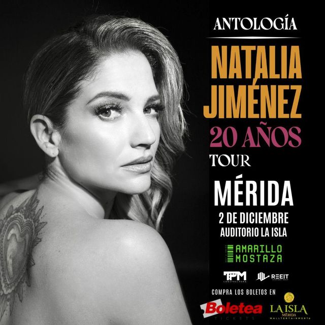 Como parte de su gira para celebrar sus 20 años de carrera, la cantante española Natalia Jiménez se presentará el próximo 2 de diciembre en el Auditorio La Isla, para recordar sus éxitos como solista, así como aquellos temas inolvidables de los inicios de su carrera con la banda La Quinta Estación.