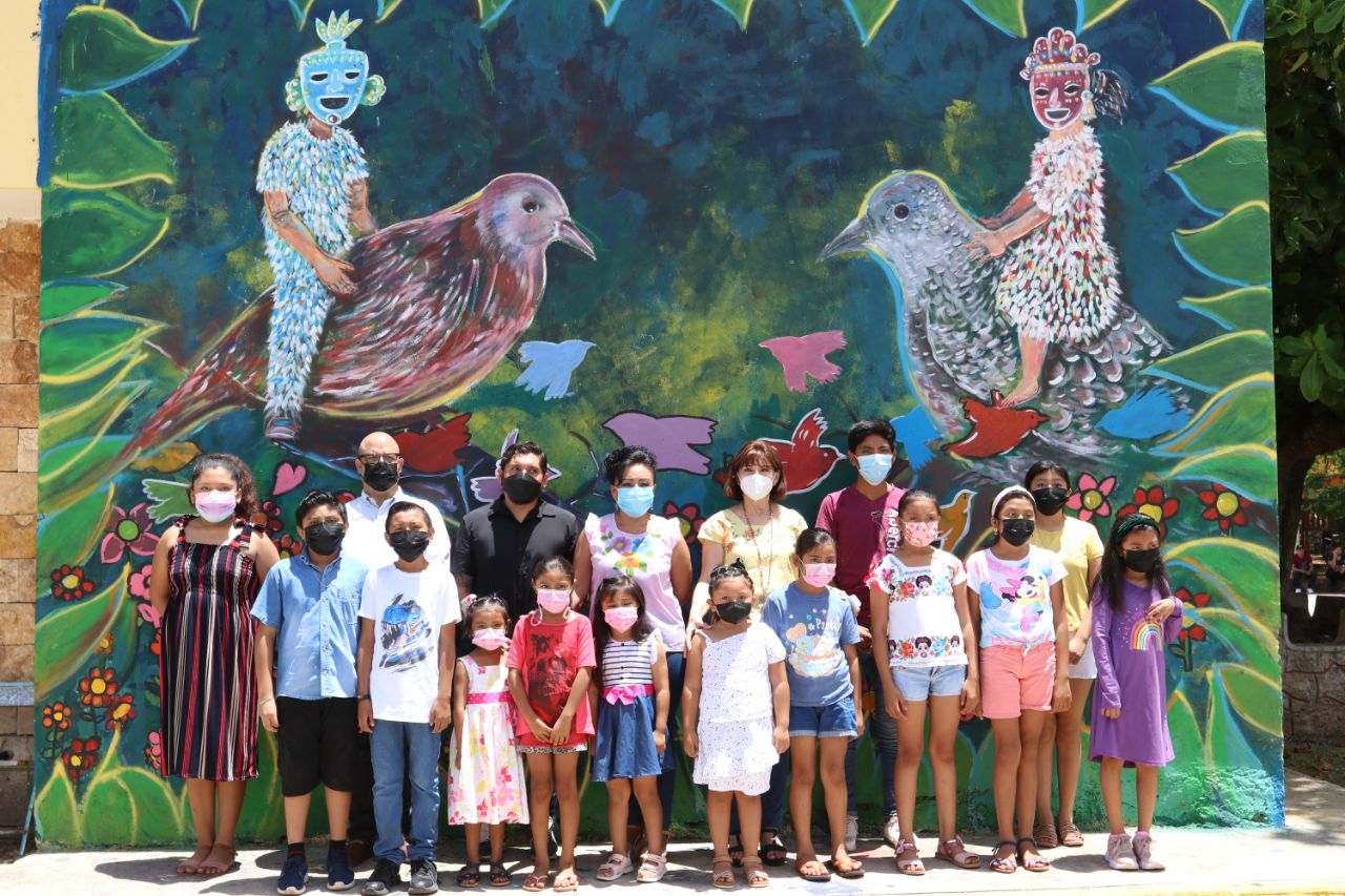 Sofía Yeudiel Kancab Castro, con 12 años de edad, resaltó la importancia de participar en el proyecto y comentó que “trabajar en el mural fue divertido y emocionante, porque se trata sobre la cultura; se puede ver a las señoras bordando, a los gremios, el palo de la corrida y a los señores bajando los cítricos, que es lo que hacemos aquí”.