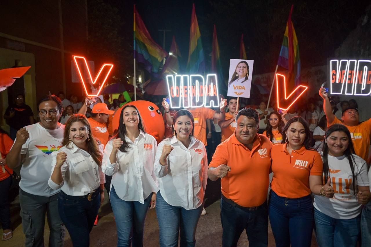 En su arranque de campaña, Willy Flota recibió el respaldo de las y los candidatos naranjas: Roberth Chim, candidato a la diputación local del distrito 14, Esthefanía Basto Rosado a la diputación federal del distrito 2, Nayelli Crespo y Mariana Zepeda a la senaduría, así como de la diputada federal y coordinadora nacional de Enlace Político, Ivonne Ortega Pacheco.