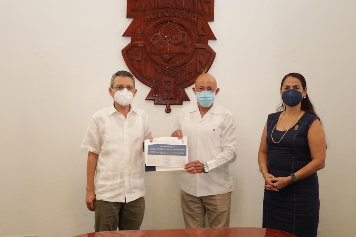 Durante el anuncio de este cambio, que tuvo lugar en el Salón de Rectores del Centro Cultural Universitario, el rector, José de Jesús Williams, expresó a Martín Briceño la gratitud de quienes integran la comunidad UADY por el esfuerzo y compromiso demostrados estos últimos dos años.