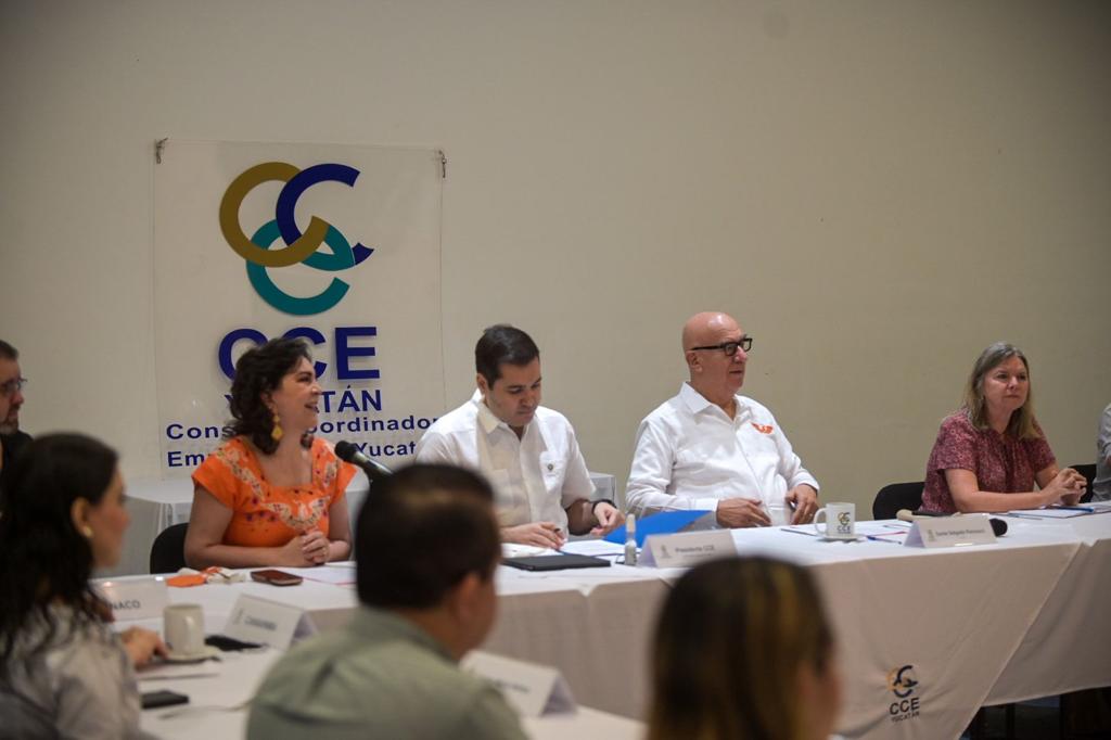 Durante el encuentro, realizado en la sede de la Canadevi en Mérida, se escucharon los planteamientos e inquietudes del sector empresarial yucateco, como la intención de un crecimiento de más del 8% en la región sureste y que se homologuen las tarifas de la CFE para Yucatán, entre otros temas.
