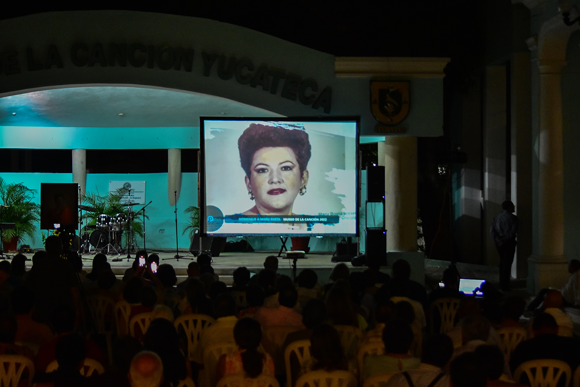 Con un ambiente de bohemia y romanticismo, amistades, familiares y representantes del sector artístico se sumaron al homenaje que se dedicó a la cantante, compositora, productora y arreglista Maru Boeta, en una noche de recuerdos y nostalgia, que incluyó concierto y develación de un óleo, en el Museo de la Canción Yucateca.